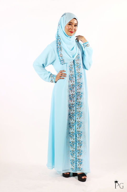 Laudya Abaya with Hijab Shawl (Baby Blue)