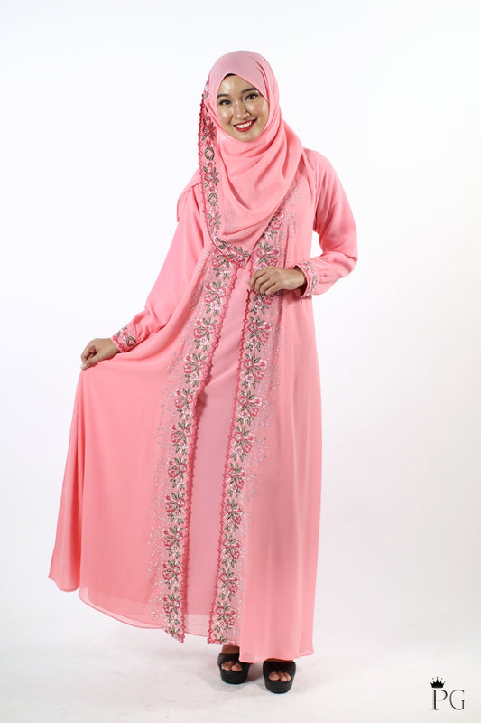 Laudya Abaya with Hijab Shawl (Salmon Pink)